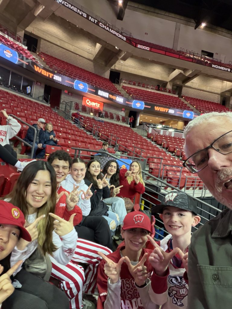Lab outing to witness the UW women’s basketball team’s dramatic come-from-behind to tie, and then win in OT, over Harvard in the quarterfinal of the Women’s Basketball Invitational Tournament (WBIT). GooooooooOOOOO BUCKY!